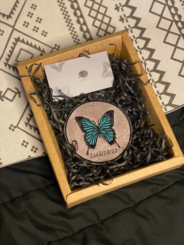 تحب القهوة والشاي؟ تميّز بكوستر قاعدة لأكوابك مطرزة بالكامل بتصميم فراشة واللون من اختيارك .
