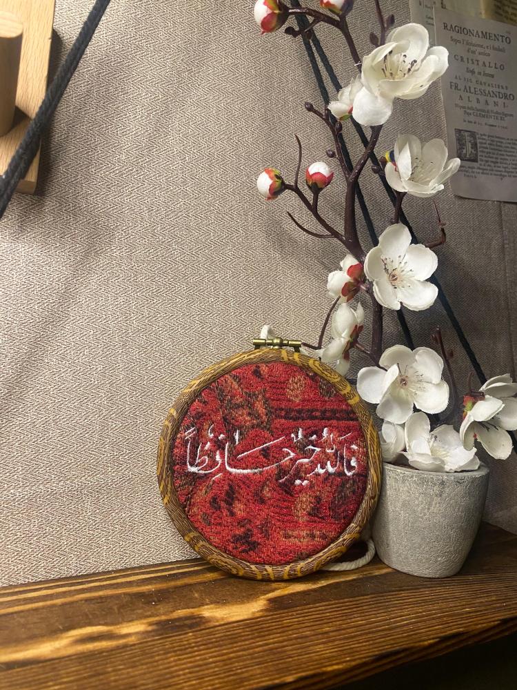 تعليقة سيارة فنية مُطرزة بـ كتابة ( اسم - جملة - بيت شعر - اغنية - رمز - شعار - لوقو ..)